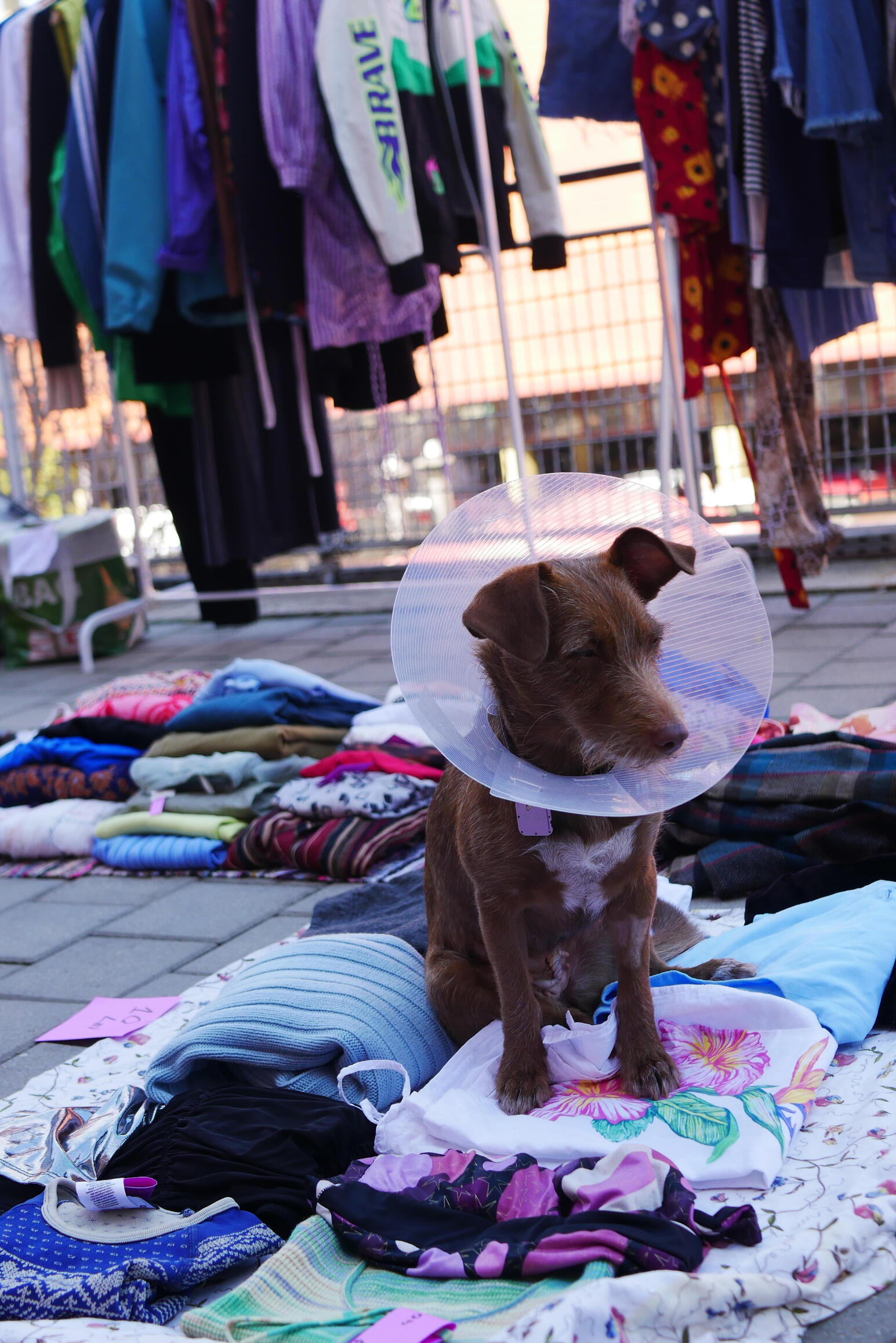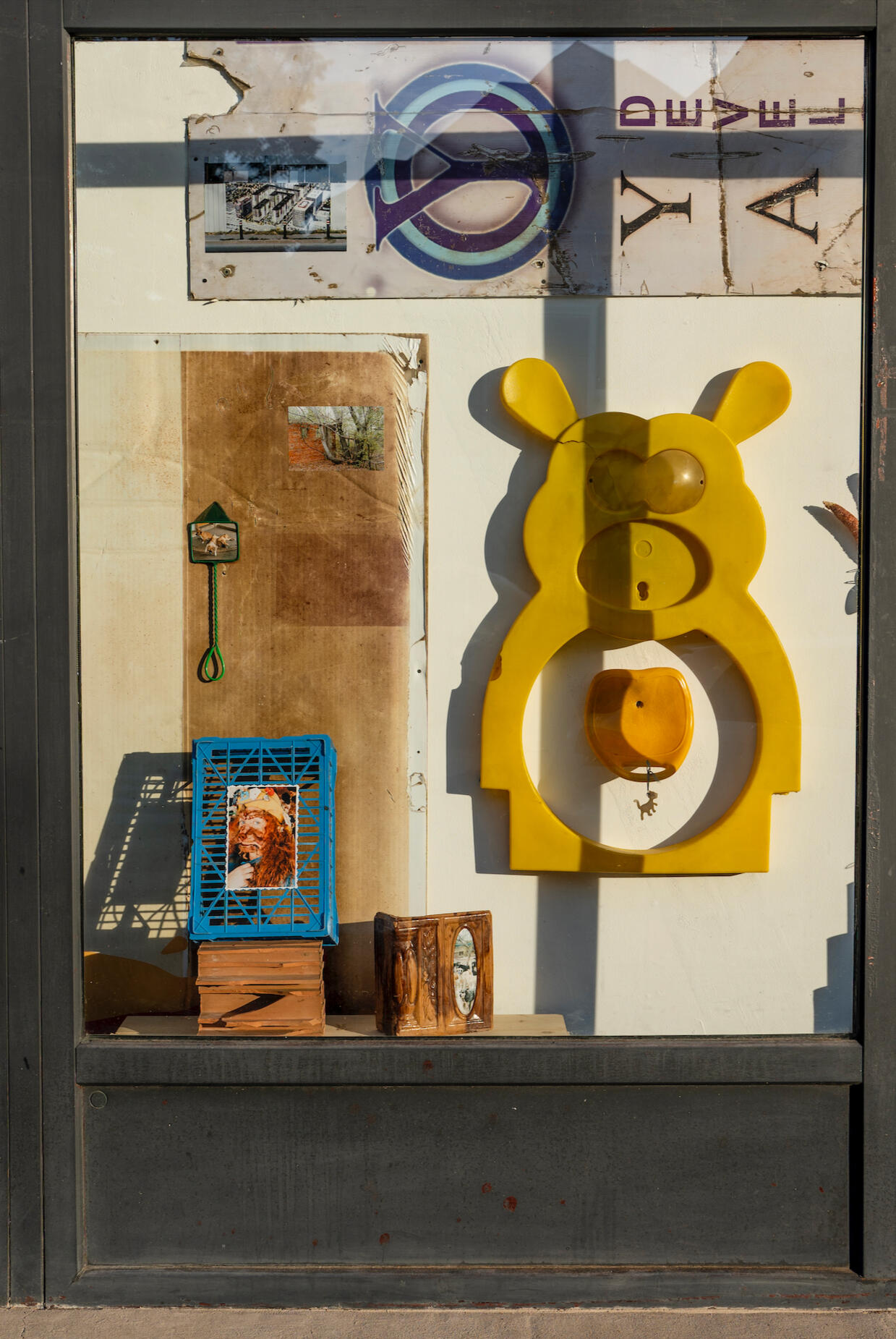 Following a radical acceptance scenario, the artists place both the human and non-human not outside of disasters, but within them—surviving, searching for resources, and creating spaces for co-existence. The storefront installation envisions a window into the dogs' home, built from damaged and discarded goods, construction site remnants, and repurposed materials—forming a new kind of canine-human alliance.
