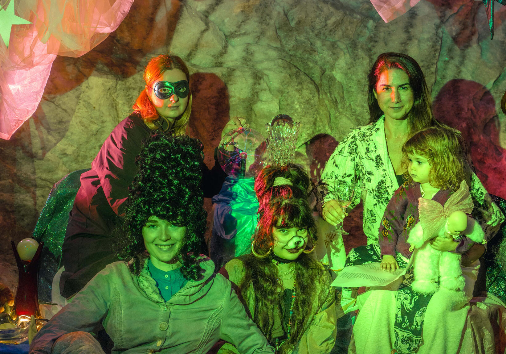 As part of the art biennale organized by Living Content, we created a photo booth inspired by the dark fantasy cinematic movement of the 1980s and its glam trends. By using props (masks, wigs, etc.), we aimed to create an interactive and fun environment that could be enjoyed by both the local visitors, the salt mine administration, and visitors from Bucharest or abroad. The booth encouraged interactions between the different groups present at the Biennale.