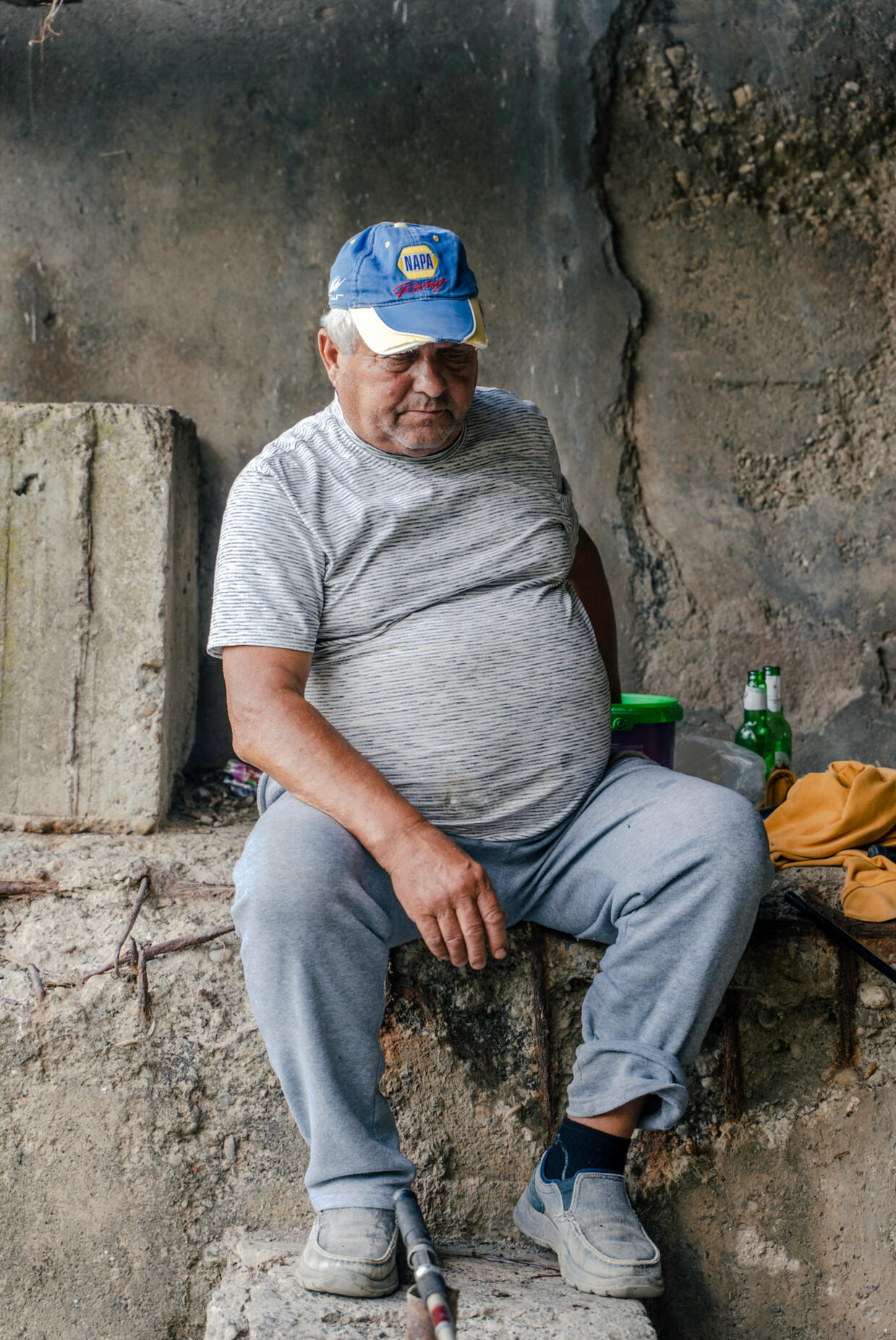 The project consists of an installation centered around a pice of video art. The video piece has both a constructed, fictional aspect and a documentary side.The fictional aspect includes a set built from construction materials and discarded objects found in a field on the northern outskirts of Bucharest, as well as costumes featuring prosthetic masks made of silicone. The documentary aspect consists of interviews and observational documentary footage capturing the northern outskirts of Bucharest.The installation was built using the same materials as the set.