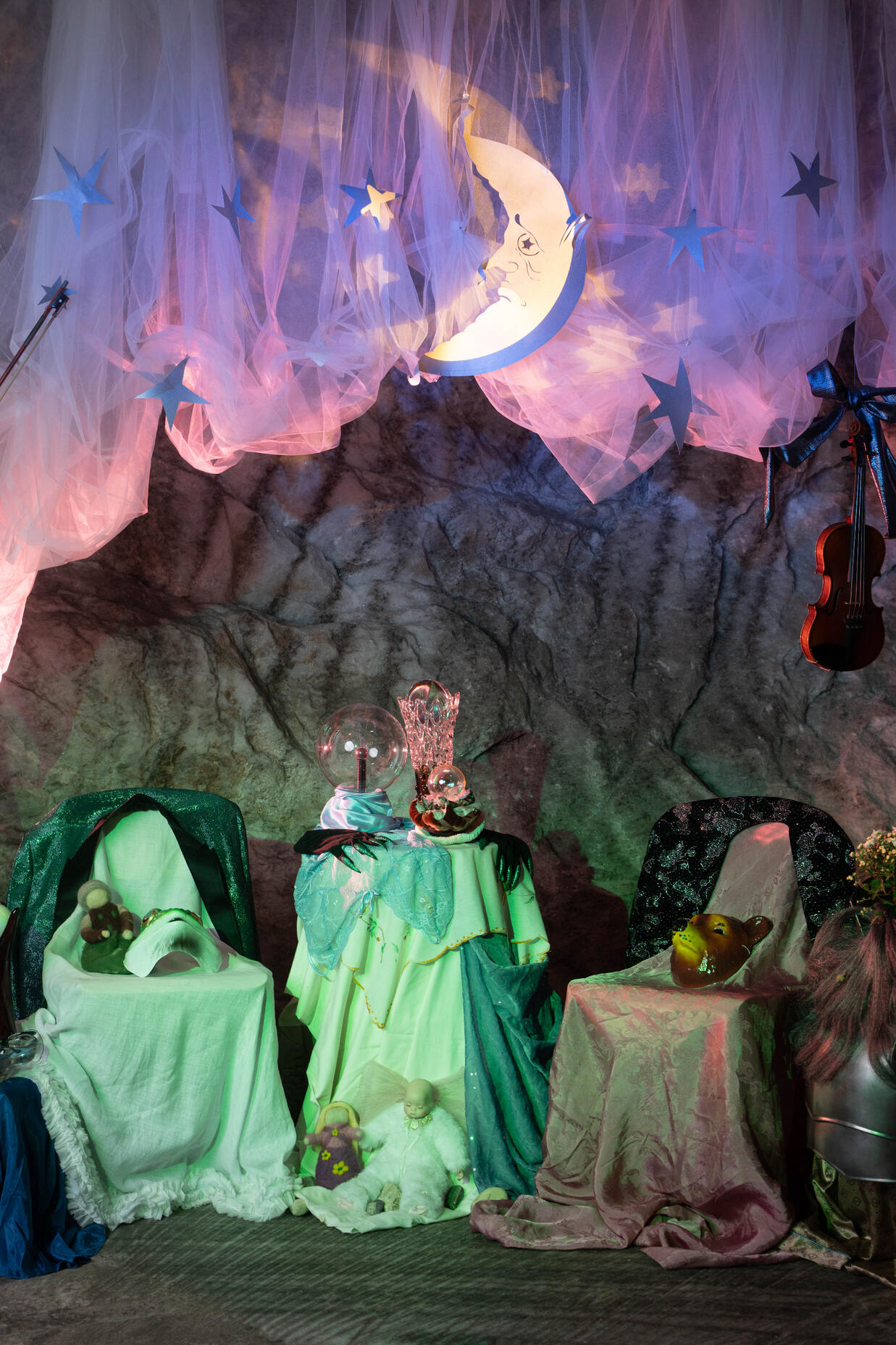 As part of the art biennale organized by Living Content, we created a photo booth inspired by the dark fantasy cinematic movement of the 1980s and its glam trends. By using props (masks, wigs, etc.), we aimed to create an interactive and fun environment that could be enjoyed by both the local visitors, the salt mine administration, and visitors from Bucharest or abroad. The booth encouraged interactions between the different groups present at the Biennale.