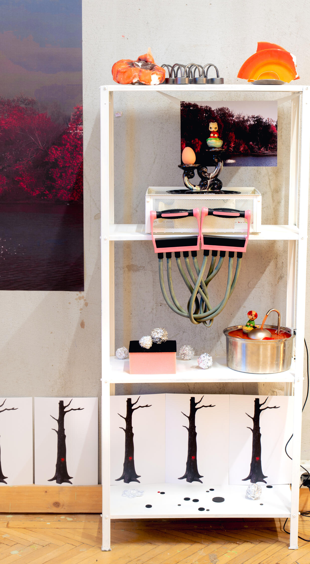 Instalație creată pentru Garage Sale Utopia în cadrul RAD Art Fair.O colecție colaborativă de obiecte pe care fiecare dintre noi le-a adunat și creat de-a lungul anilor, obiecte pe care le-am împachetat, despachetat și transportat din casa părinților în apartamente închiriate. În contextul iarmarocului, aceste obiecte sunt reevaluate, căpătând noi calitatea ca obiecte de artă sau uzuale. Rolurile lor se amesteca, iar valoarea principală devine cea de obiect-amintire.Fiecare element din instalatie a putut fi cumparat, iar prețul a fost negociat pe loc, punând accent pe atașamentul emoțional în detrimentul valorii obiective. Aceste negocieri au generat conversații captivante cu publicul, dezvăluind subiectivitatea percepției noastre asupra obiectelor.Mulțumiri către Alexandru Niculescu și Sandwich Gallery pentru invitația de a participa și pentru susținere!